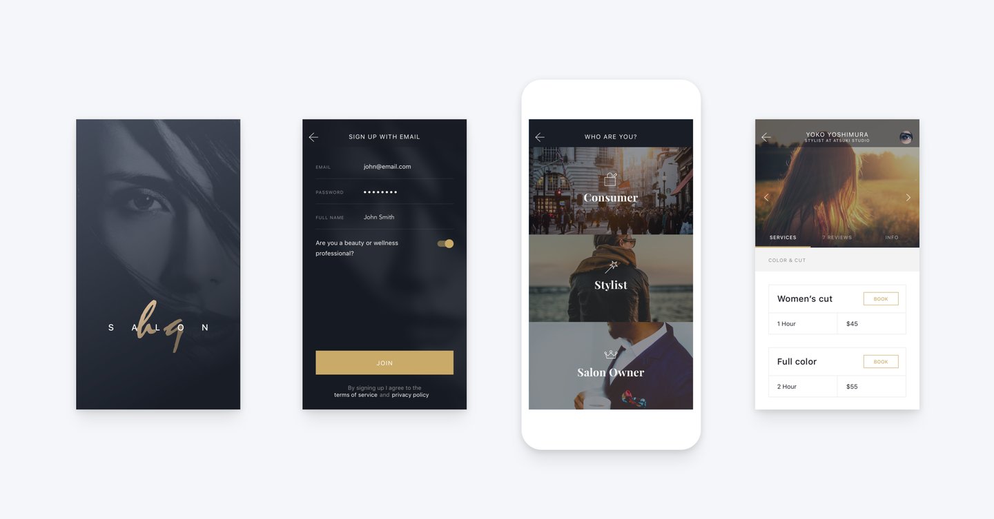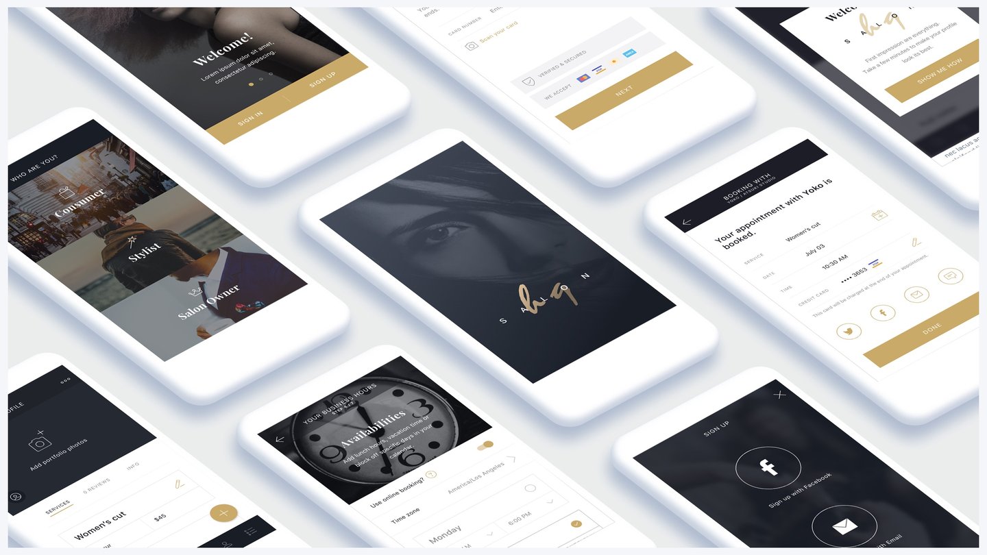 Design a trendy salon-booking app, defining its audience and crafting a bold, modern visual style.